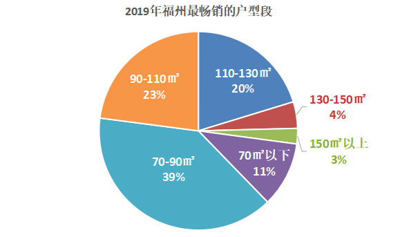 据克而瑞的统计,从面积段来看,70-90㎡的刚需小户型成为福州2019年市场成交主力。数据显示,2019年福州最畅销的户型面积为70-90㎡的产品,共成交了10280套,占比将近4成。90-110㎡和110-130㎡的面积段分别排在第二位和第三位。