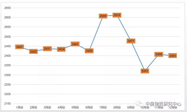 进入9月后,毕业季的需求基本完成,市场迅速恢复正常需求,价格出现较大幅度的跳水。至10月,走出本年最低价格,套均仅2321元。11月又小幅上涨,12月与11月基本持平,套均达到2403元。
