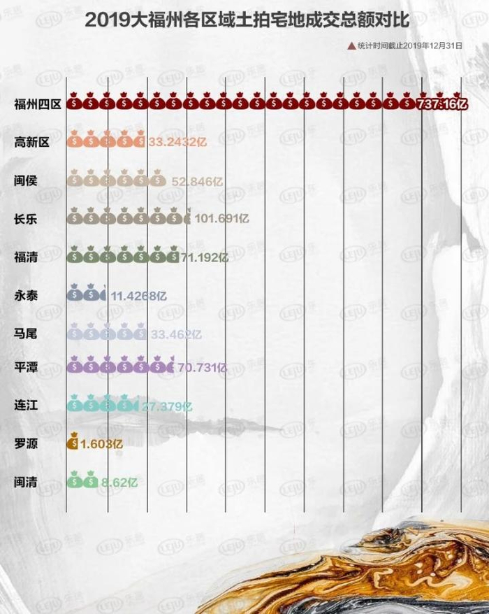 在前所未有的土拍大潮之下,2019年,大福州宅地土拍成交总金额顺利越过千亿大关,创下历年之最!