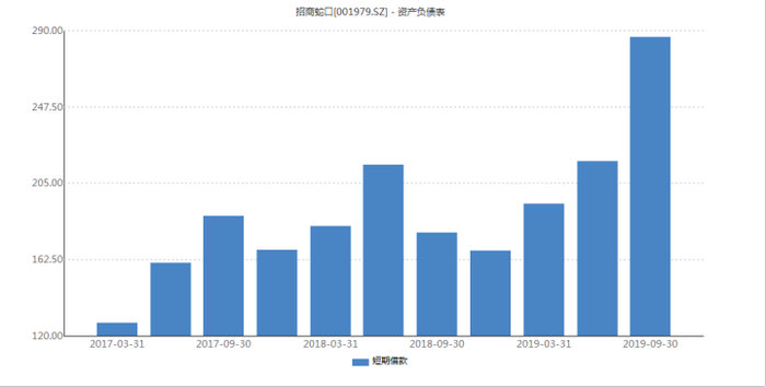 截至2019年9月底,招商蛇口短期借款为286.28亿元,较2018年底大幅增长71%,是近三年来的新高。