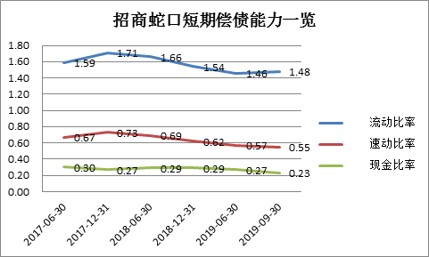 从近三年短期偿债指标来看,流动比率从1.71下降至1.48,流动比率从0.73下降至0.55,现金比率从0.27下降至0.23,多项指标持续走低。