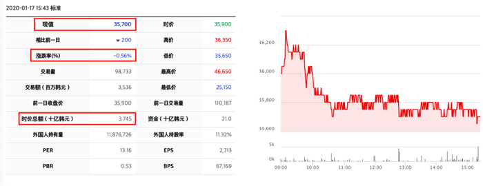 2020年1月17日收盘,乐天集团股价报35700韩元,下跌0.56%,以当日收盘价计市值约3.745万亿韩元,约合32亿美元。