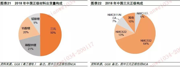 为了满足电动汽车对锂电池性能要求,锂电池的技术也在不断进化。按照正极材料分,锂电池的正极材料包括磷酸铁锂、三元材料和锂硫电池,其中锂硫电池技术尚不成熟,磷酸铁锂容量较低,而三元材料尽管安全性不如磷酸铁锂,但电池容量有较大提升,是目前重点发展方向。
