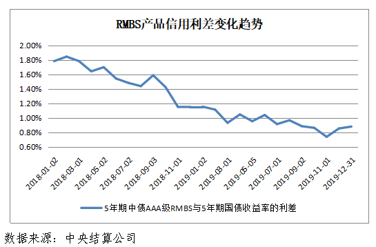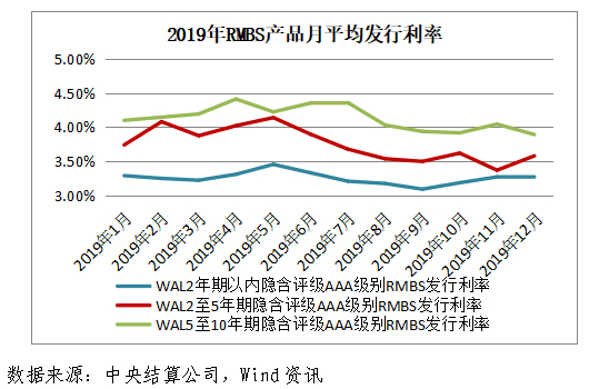 2019年,由于宽松的货币政策,RMBS发行利率较2018年有所下降,负利差风险有所缓解。