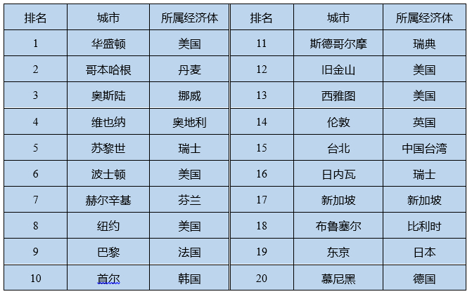 当前,数字化和全球化正在增强创业人才的作用。2019年的人才竞争力报告特别侧重于创业人才——如何在全世界鼓励、培养和发展创业人才,以及这如何影响不同经济体的相对竞争力。为了激励企业家和企业内人才,新办法正在出现,例如努力发展自下而上的创新、赋予雇员权力。这种变化在城市尤其明显。分城市看,2019年全球人才竞争力20强城市全部位于发达经济体(表3所示),美国城市占了四分之一,华盛顿是全球人才竞争力最强的城市。华盛顿位居榜首可归因于其稳定的经济、充满活力的人口、卓越的基础设施以及高技能的劳动力和世界一流的教育。总体上,排名靠前的城市往往对人才最开放,而且“智慧城市”生态系统正越来越多地发挥“人才磁铁”作用。