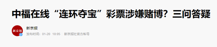 但截止目前,除了在2019年12月17日就已经宣布“连环夺宝”会在2020年3月20日停售外,“中福在线”的发行方中国福利彩票发行管理中心和批准“中福在线”及其相关游戏的财政部,并未就“中福在线”更深层次的这些管理和宣传问题给出回应。