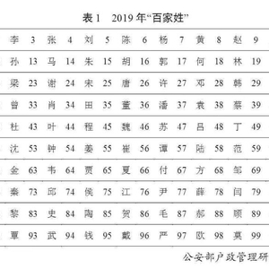 按户籍人口数量排名,2019年的“百家姓”与2018年相比略有变化。