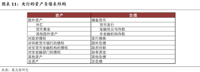 在一个开放经济体中,财政赤字货币化必然存在贬值约束:本币增发会带来贬值压力,从而造成资本外流,通过财政增发的货币可能被转换为外币流向国外。最后体现在央行资产负债表上:财政赤字货币化意味着,资产端“对政府债权”增加、负债端“政府存款”增加[1];资本外流意味着,资产端“国外资产”减少、负债端“货币发行”减少(图表11)。因此最后央行的资产负债表可能并没有扩张,只是在不同的科目之间转移,对经济也可能并没有太大的影响。