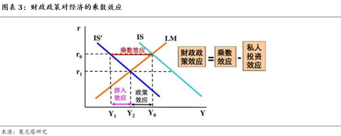 (1)财政扩张对经济的乘数效应要更大些。如果央行是在二级市场购买国债,把钱给到商业银行,商业银行再将资金提供到实体经济,这个过程中必然会产生漏损。但是如果央行直接在一级市场购买国债,把钱给到财政由财政直接投资,就不会产生任何资金漏损;同时,央行直接在一级市场购买国债,相当于投放基础货币,可将利率维持在低位,缓解财政支出对私人投资的挤压,因此对经济的乘数效应也就更大(图表3)。