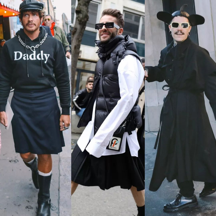 此次巴黎秀场外一个极其出众的穿搭单品就是男士裙装,早些时候,连Nicopanda和Hood By Air,甚至Gucci,Burberry等欧洲高级时装品牌都推出过男士裙装的设计。