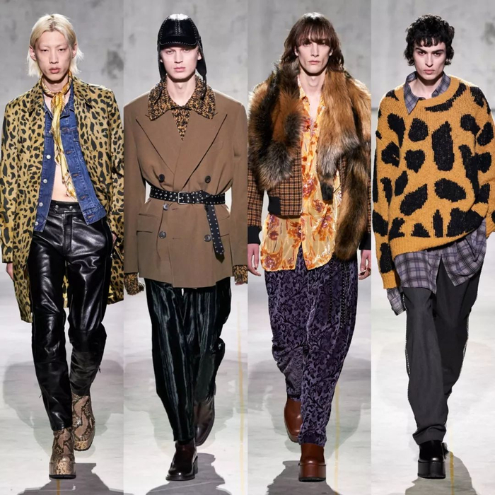 本次男装周最突出的一点就是开始对于动物纹设计的新轮回,Dries Van Noten、Paco Rabanne等品牌都在此次的男装周中运用到豹纹、蛇纹、鳄鱼纹等各式动物纹。