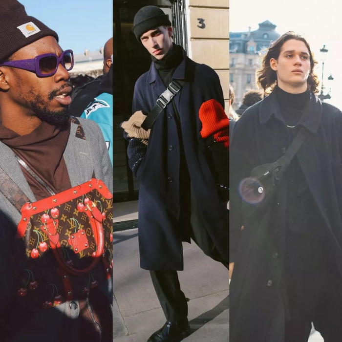 男装周最突出的配饰就是各类胸包,各类时装小怪人将包怼在胸口晃来晃去。