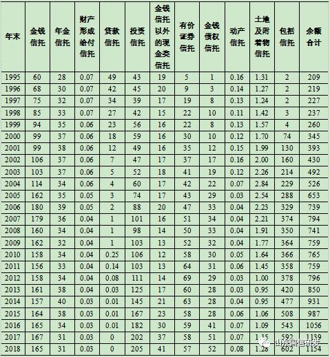 附注1:包括信托是指对《日本信托业法》第4条各号所列举的财产,将两个以上不同种类的财产,以一项信托行为而接受的信托。(数据来源:根据日本信托协会网站的相关数据绘制:http://www.shintaku-kyokai.or.jp/)
