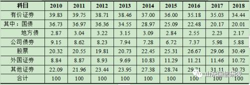 表4 2010年至2018年日本有价证券信托中各类资产占比(%)