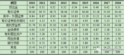 4. 混业经营下深耕资本市场。日本信托业经历了分业-混业-分业-混业的发展阶段,在经历了行业的重组并购后,信托行业既有银行贷款业务经营的经验,也在信托业务方面做了较多的探索,信托业务成为除了利息收入的重要来源,从2010年至2018年,证券业务在日本的各类资产配置中一直较高,达到35%以上。