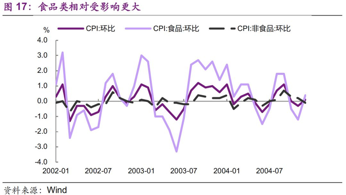 非典对物价有短暂冲击,2003年4-5月物价受季节因素和非典疫情影响,环比下降幅度较大,6月份非典疫情得到有效控制后,不利影响渐趋消散,消费需求回暖,加上投资需求旺盛,物价总水平回稳。