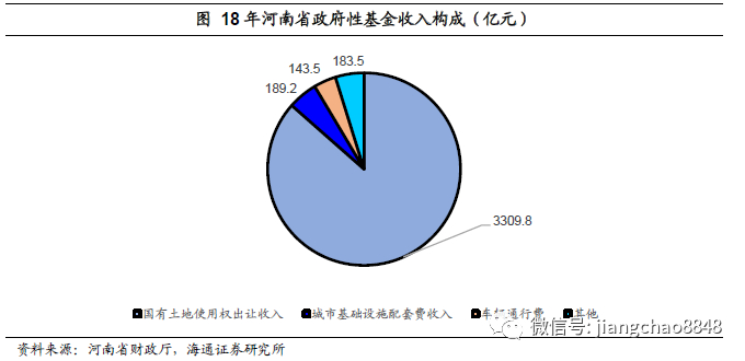 河南省18年土地使用权出让收入在政府性基金收入中占比超过八成。18年河南全省政府性基金收入决算数约为3826亿元,其中国有土地使用权出让收入约为3309.8亿元,占比约为87%,是政府性基金收入较为主要的收入来源。