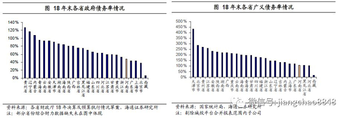 总量大省,债务率相对较低。1)河南省GDP总量较大,人均在全国中游水平,产业结构为二、三产业并重。2018年河南省GDP总量在全国排名第五位,人均GDP全国排名第18位。就产业结构来看,18年第二产业及第三产业占GDP比例较为接近,其中第三产业增加值增速较高为9.2%。2)人口净流出,但速度减慢。河南省是人口大省,根据河南省统计局目前可得的18年数据,河南省18年仍然处于人口净流出状态,但流出速度有所减缓,2018年省际净外出人口比上年增加7万人,增量比2017年减少31万人。3)总体财政实力较强,税收收入占比偏低、财政自给率一般。河南省18年综合财力约为1.38万亿,在数据较完备的27个省中排名第6位。从财政收入结构来看,18年河南省税收收入占一般公共预算收入比例处于全国第24位相对靠后,财政自给率为40.8%,处于全国中间位置。4)债务率相对较低。截至18年末河南省债务率约为47%,考虑到各省城投带息债务后的广义债务率约为108%,均处于全国较低水平。
