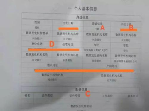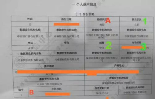 ▲一代征信“个人基本信息”部分中身份信息部分