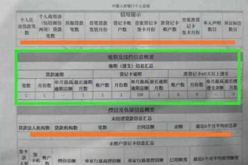 ▲绿色方框内的即为一代征信中的“逾期及违约”记录