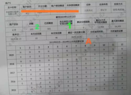 有哪些信息展示的调整呢?跟前面的贷款类信息一样,把展示的还款记录时间由之前的2年延长到了5年(详见上图中橙绿色字母A处)。
