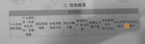 ▲一代征信信息概要中的信用提示