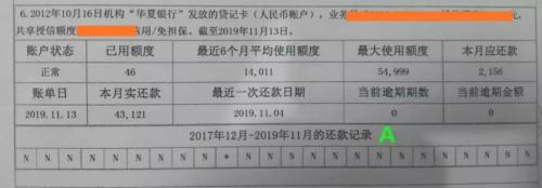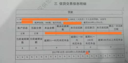 ▲一代征信贷款中某个账户的记录
