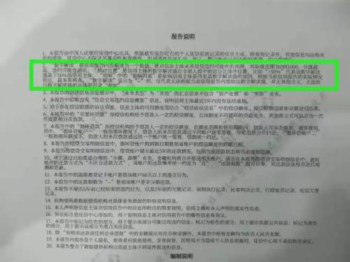 二代征信报告中的报告说明有20条,一代征信报告中的报告说明有9条。因为二代征信中增加循环贷等信息,所以也多了很多的解释,但我认为最重要的说明是第二条(也就是上图中的绿色方框部分):