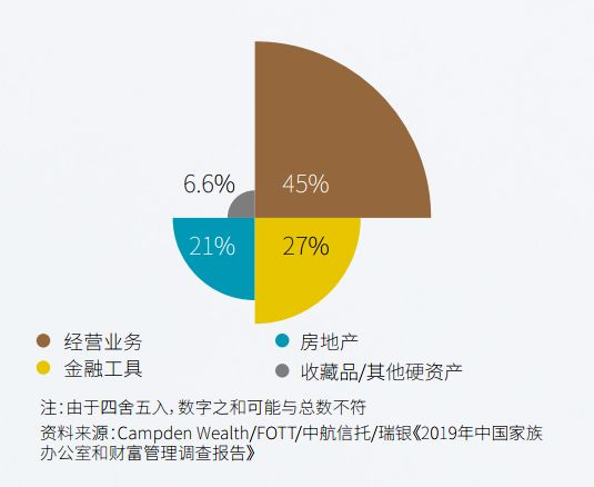 就家族财富的存在形式而言,经营业务占45%,金融工具和房地产分别占27%和21%,其余部分(6.6%)是收藏品或其他硬资产,包括艺术品、汽车和葡萄酒。