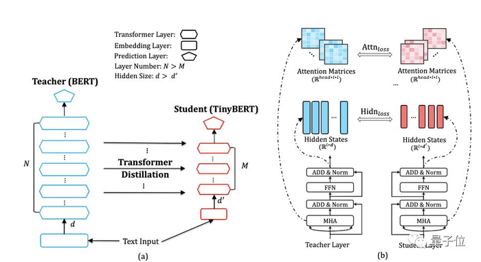 研究人员还提出了一种专门用于TinyBERT的两段式学习框架,分别在预训练阶段和特定任务学习阶段进行transformer蒸馏。