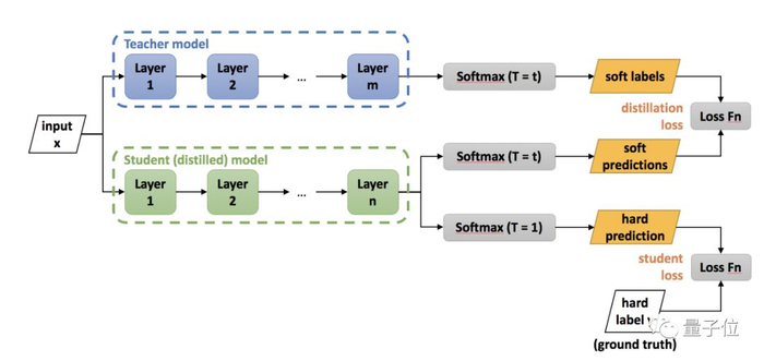 然后,让教师网络训练一个较小的学生BERT网络,这个学生网络只有4个隐藏层,而非标准的12层。