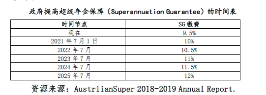 澳洲政府将逐年提高超级年金保障的缴费。具体时间表如下: