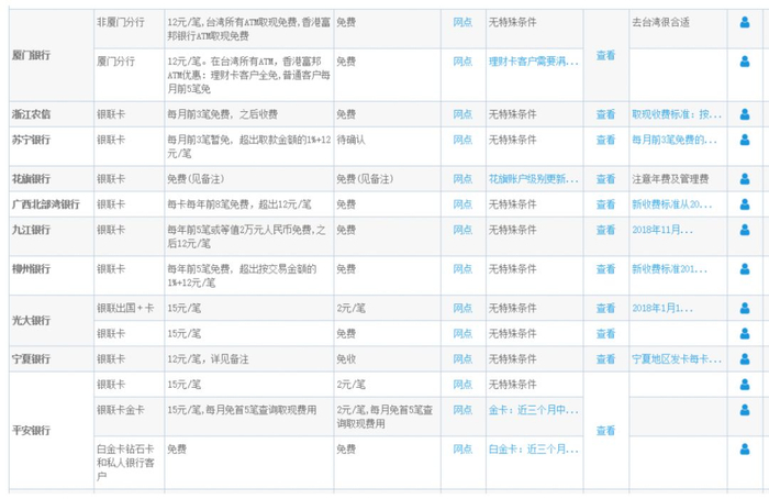 关于境外取现手续费,不同银行、不同卡种的规定不同,可能会带来一笔不小的费用。这时候,有些银行提供的境外取现优惠就显得很实用。详情可参考以下列表(信息来源于快易理财网,不保证信息正确,详询发卡行)。