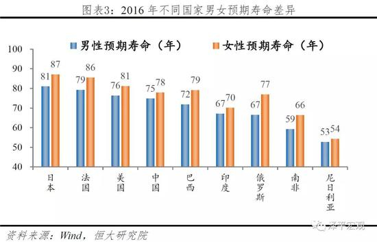 从实证角度出发,经济收入对健康寿命的影响也能得到进一步的验证。例如冲绳、撒丁岛等世界公认的长寿之乡均位于高收入国家;同为黑种人,由于美国黑人的人均收入高出非洲国家5倍以上,其预期寿命也高出10年以上;俄罗斯在上世纪90年代苏联解体后经济倒退、失业率攀升,其男性预期寿命也急剧下滑。个人经济收入方面,韩国收入最高与最低20%的人群预期寿命相差6年。