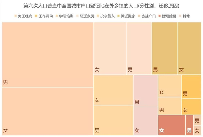 其实论到第二、三种心理,婚姻的作用便弱化了,事实上也确实如此。1990年时还有62.8%的外出女性属于婚姻迁移,但到2010年,随着工作、学习机会带来的流动性增强,这一比例已降至仅约5%。而如今人们发生迁移的原因更多地是与务工经商、工作调动和学习培训等相关。那么,女儿即便不远嫁,难道就一定会留在父母身边吗?答案显然是否定的。