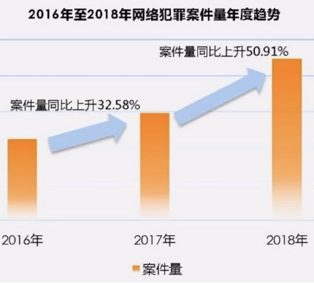 据最高人民法院近期发布的《司法大数据专题报告之网络犯罪特点和趋势》统计显示,2016年至2018年,网络犯罪案件已结4.8万余件,案件量及在全部刑事案件总量中的占比均呈逐年上升趋势。据公安部信息显示,网络犯罪已占我国犯罪总数的三分之一,且呈不断上升态势。2018年案件量显著增加,同比升幅为50.91%。