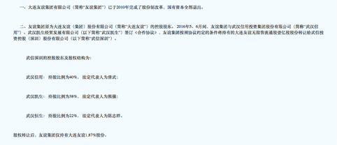 2016年5月,随着一纸公告的披露,大连友谊(000679.SZ)股权转让事件拉开,最终原股东友谊集团基本退出,仅保留1.87%的股份,新任实控方武信投资控股股份有限公司(下称“武信投资”)上位。
