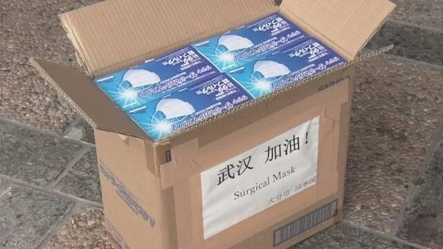 日本友好城市3万只口罩捐武汉 用中文写"武汉加油!"