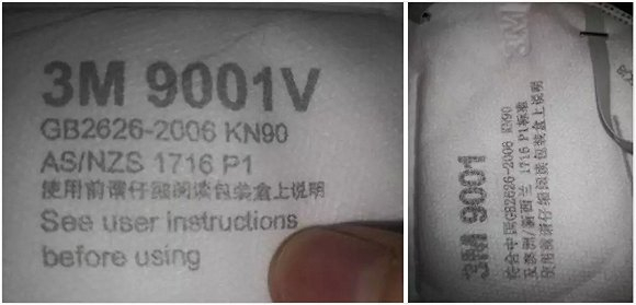 4、在口罩上的字体,真货为激光打印,有斜纹,假货为油墨印刷,有圆点。