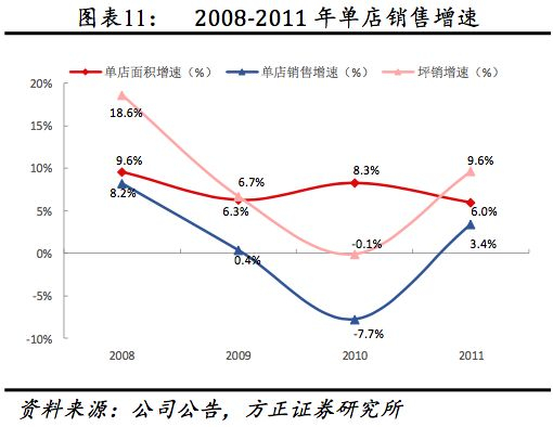 (1)从长期看,2012、2013受行业需求回落、库存高企,营收下滑,2014起稳步复苏,2007年起十年来整体维持高成长:①2007-2017十年营收复合增速达18.03%;②店铺数自4716家增长至10983家,复合增速达8.45%;③员工数自10280增长至18800人,复合增速达6.22%;人均产出自30.95万元/人增长至88.79万元/人,复合增速达11.11%。