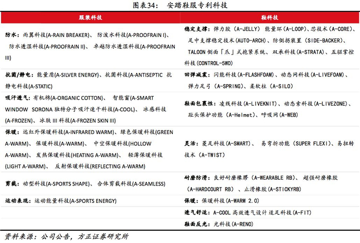 自主研发掌握核心技术。截止2018H1公司已拥有23项服装科技与30项鞋产品科技,2017年发力国际巨头具有绝对技术优势的减震回弹领域,推出采用中底+外底一体式设计动态网科技(A-LIVEFOAM)及历时三年独立自主开发的超弹效果闪能科技(A-FLASHFOAM),产品性能持续升级。