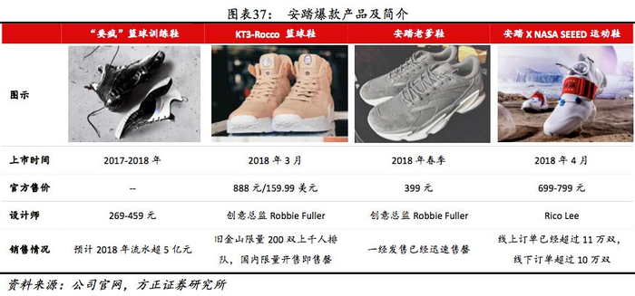 联名合作+线上定制,加强差异化竞争力。2016年公司引入ADIDAS Crazy Quick系列设计师Robbie Fuller,其操刀设计的安踏老爹鞋Walker Version 1一经发售即迅速售罄,KT3-Rocco更引发洛杉矶千人排队抢购。另外相继与KIKS、黑豹、战马、NASA等知名 IP合作推出联名潮鞋,2017年3月上线定制业务ANTAUNI,持续打造差异化产品,吸引更多年轻消费者关注。