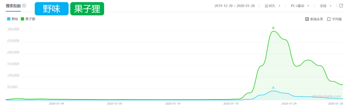 横向对比“野味”、“果子狸”的搜索指数可以发现,两者的发展趋势极为相似,都在1月20日开始走高,在1月22日迎来高峰。