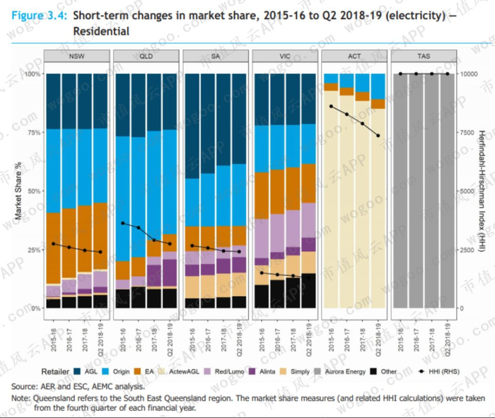 第三,近年来澳大利亚各州的电力零售商数量不断增长,竞争加剧使得原本属于三巨头(注:分别指AGL、Origin、简称EA的EnergyAustralia)的市场份额减少。中电出售EnergyAustralia难以获得高溢价。