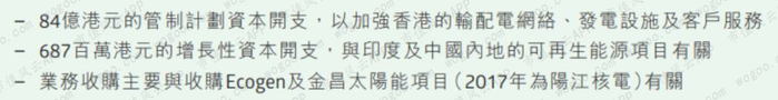 另外,增长性资本开支与印度和中国内地的可再生能源项目有关,2018年达到6.87亿港元。