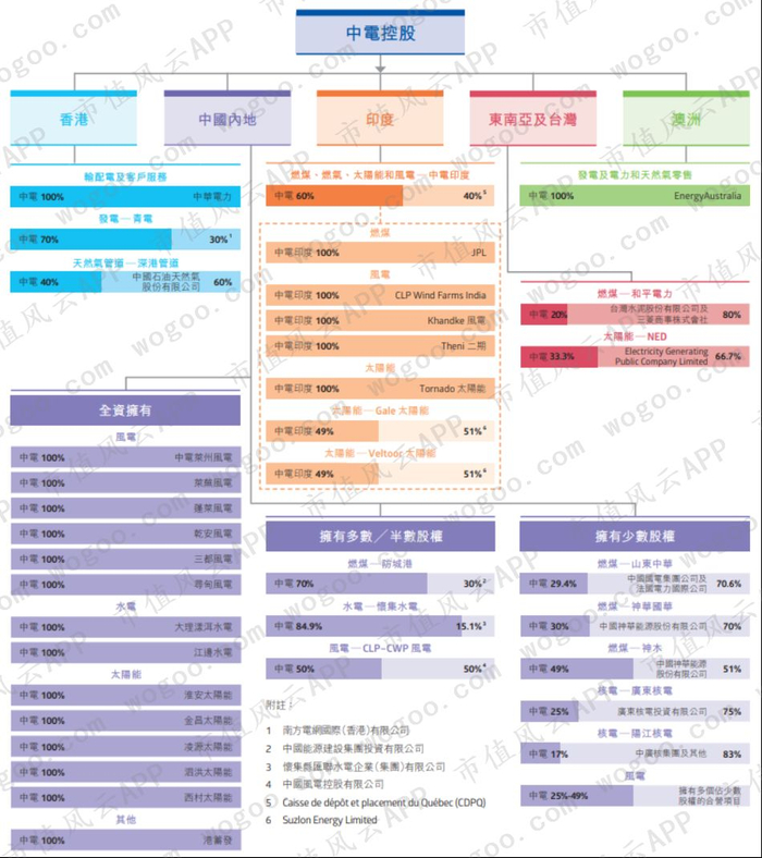 总结一句,中电在香港是纵向全覆盖经营模式,在澳洲是上游发电和下游零售业务,在中国内地和印度则只从事发电。