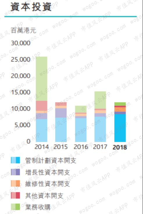 近五个完整年度,中电的资本开支均在100亿港元左右,其中2018年达到103.3亿港元。