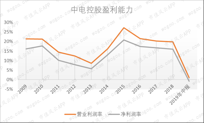 2018年,中电的营业利润率和净利润率分别为19.9%和16.0%。