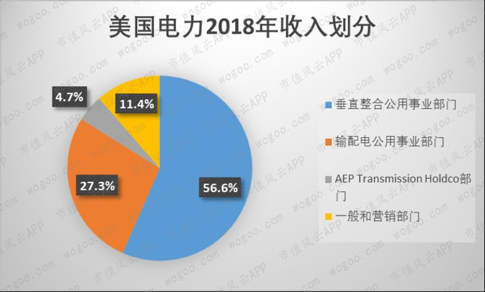 美国电力既有从发电到电力零售的垂直整合模式,也有输配电业务,两者分别占其2018年收入的56.6%、27.3%。