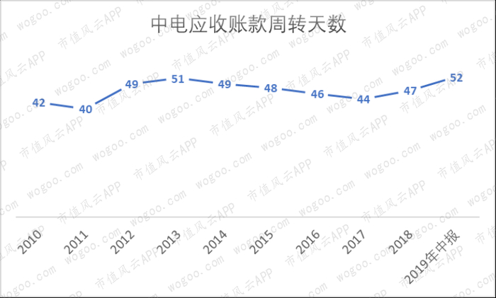 公司层面,2018年中电的应收账款周转天数为47天。2013年以来,公司的应收账款周转天数总体上呈下降趋势,反映了公司运营能力的优化。